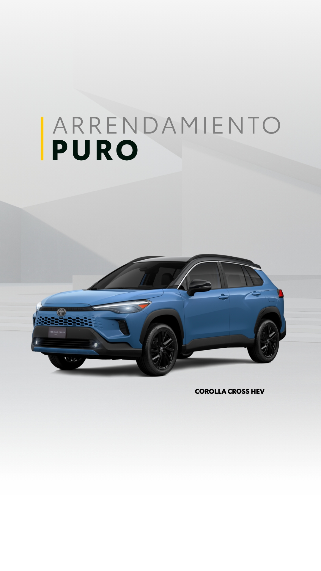 Con nuestro Arrendamiento Puro podrás hacer uso de un automóvil nuevo Toyota, mediante un pago mensual accesible y al finalizar tu contrato, podrás elegir entre comprar, refinanciar o devolver el vehículo.