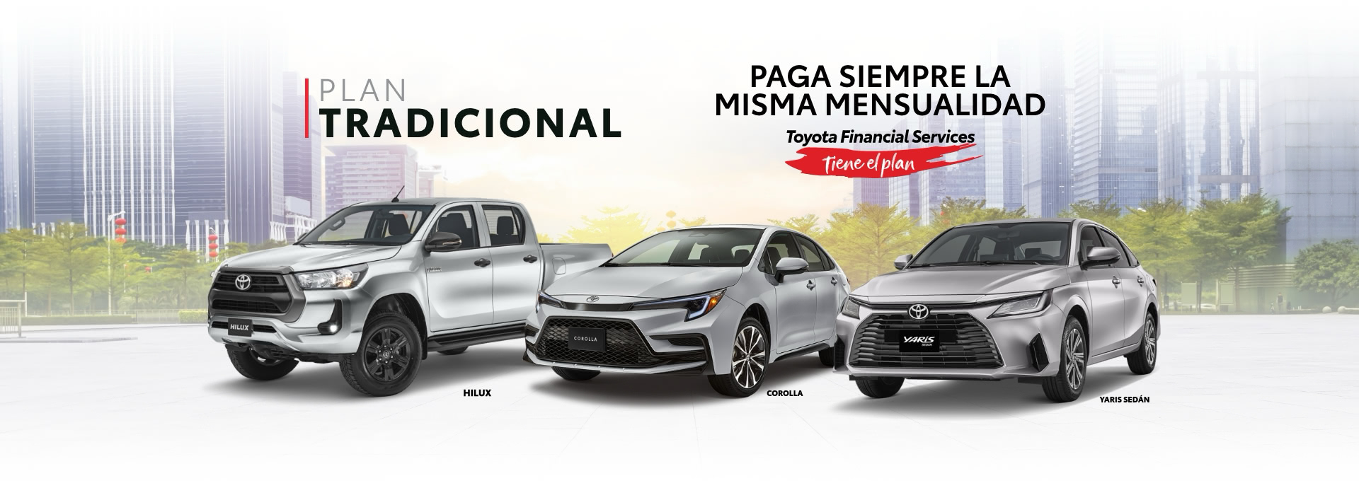 En caso de requerir más información acerca del Plan Tradicional, favor de acudir a tu Distribuidor autorizado Toyota más cercano. La imagen del vehículo es únicamente ilustrativa y puede variar de las versiones físicas.