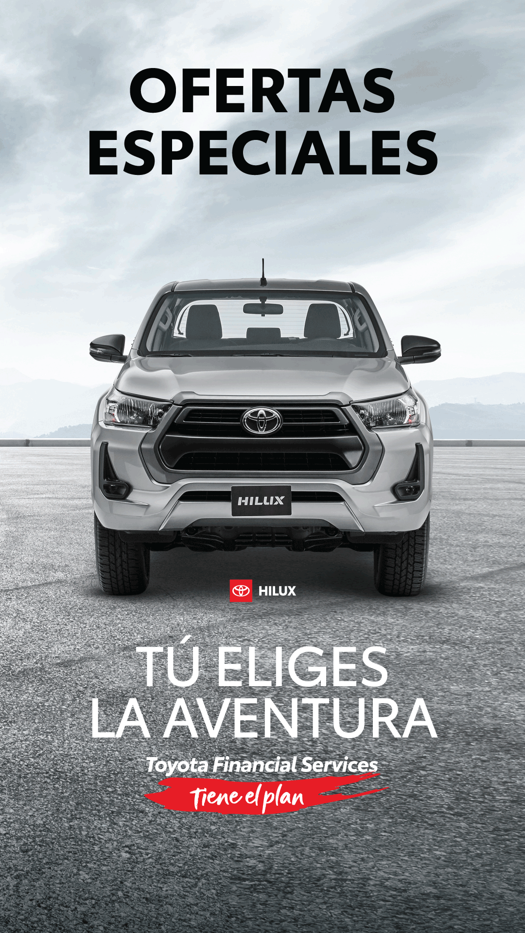 Aplica para Toyota Hilux versión Doble Cabina SR, modelo 2025; bajo las siguientes condiciones de contratación: tasa de interés desde 7.99%; comisión por apertura del 0%; plazos de financiamiento únicamente de 36 meses; esta promoción aplica exclusivamente al esquema de financiamiento denominado Plan Tradicional. Asimismo, el producto financiero a que se refiere este aviso requiere la contratación obligatoria de dos seguros, uno contra daños y otro, una póliza de SEGURO DE VIDA CRÉDITO CON PERIODO DE CARENCIA Y MUERTE ACCIDENTAL, las pólizas pueden ser pagadas ya sea en un esquema financiado o cubierto en una sola exhibición al momento de la firma del contrato. Con un monto máximo a financiar por la cantidad de $488,000 M.N. (cuatrocientos ochenta y ocho mil pesos 00/100 Moneda Nacional), el monto a financiar puede variar en caso de que las pólizas de seguro sean contratadas en un esquema de financiamiento. Cualquier modificación en los elementos antes referidos, cambiará invariablemente las condiciones del financiamiento, por tal razón le sugerimos consultar términos y condiciones con el Distribuidor Toyota de su preferencia;